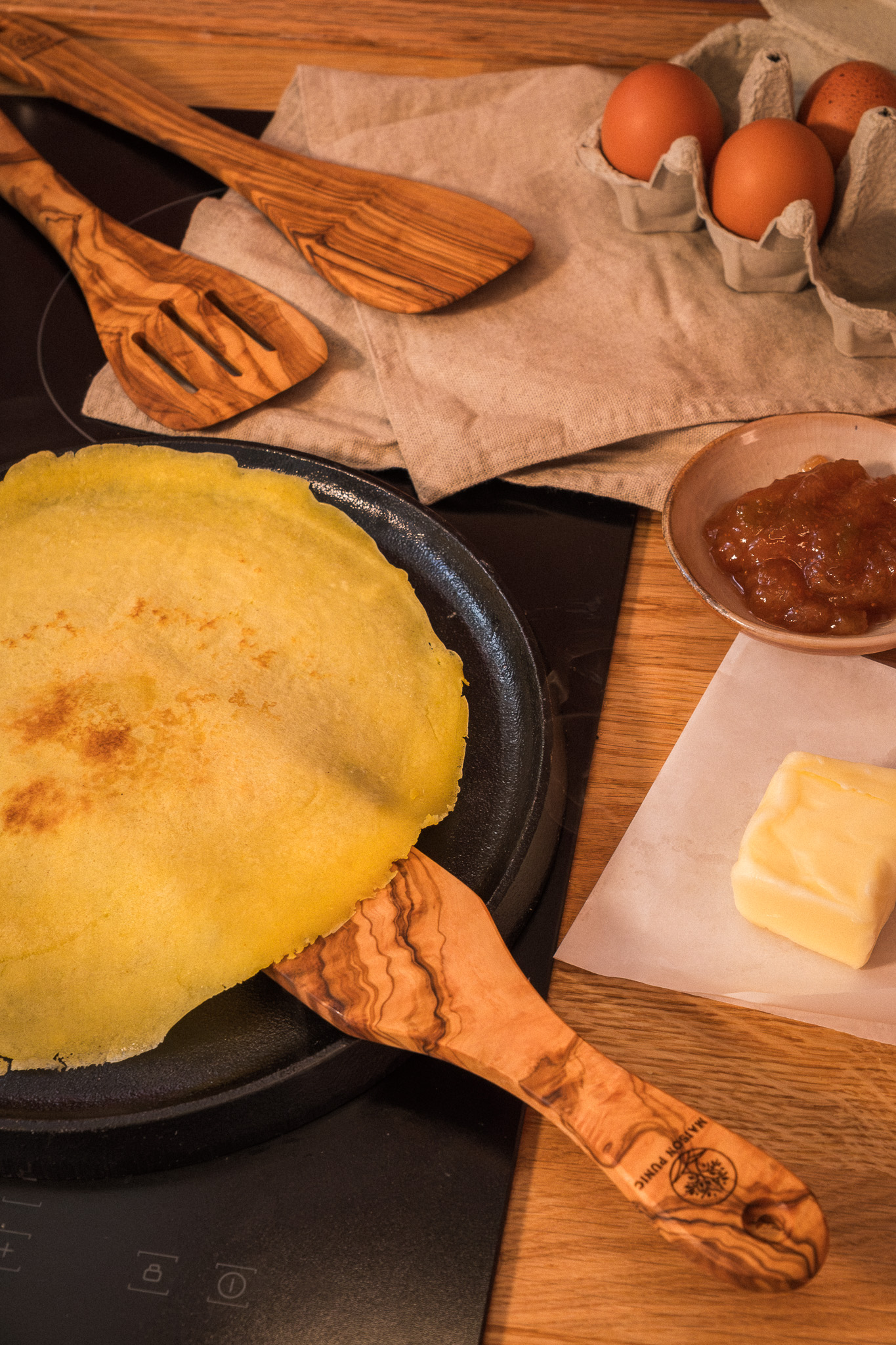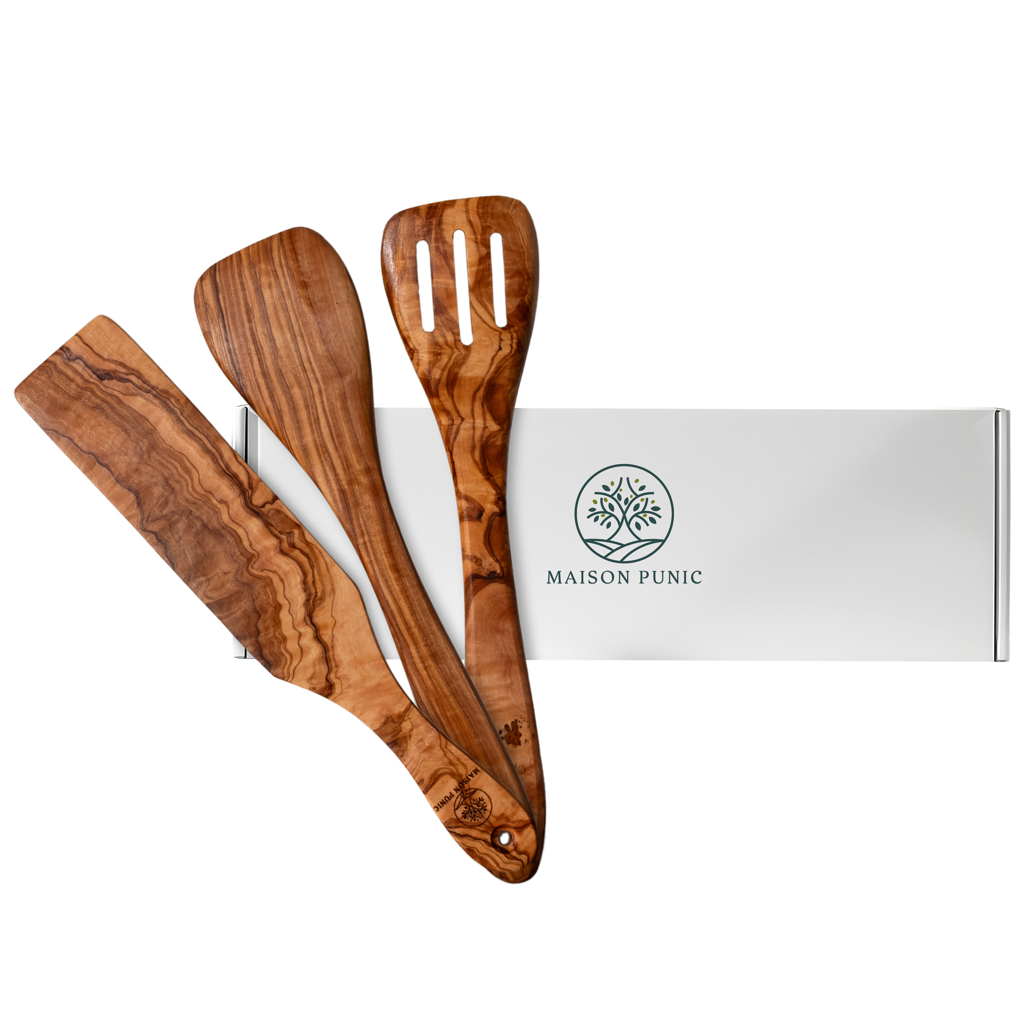 Maison Punic’s olive wood utensil set is a durable, naturally antibacterial alternative to plastic or metal tools. Crafted from hard, oil-rich Tunisian olive wood, it includes three spatulas in different shapes. Perfect for your breakfast, Matin Punic adds a touch of Mediterranean charm to your morning routine, making it not just a kitchen tool but a beautiful and lasting companion to start your day.